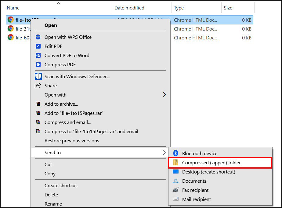 This will make the .zip file in your file system. Now attach the .zip file and Send a file us.